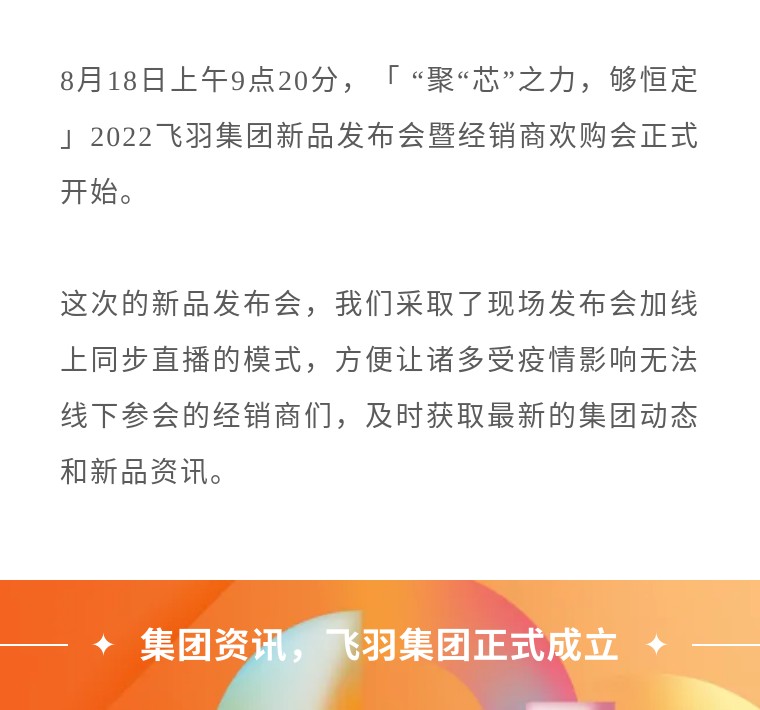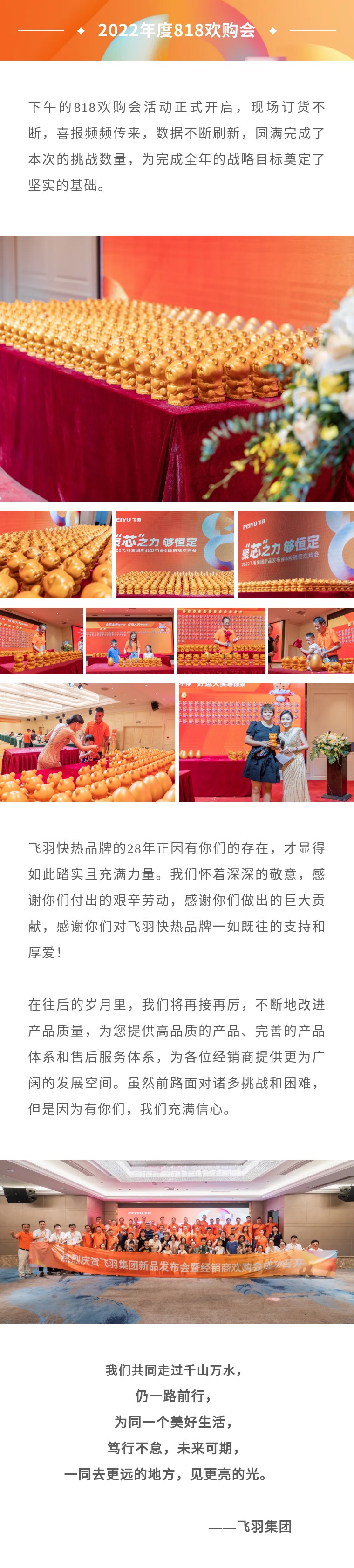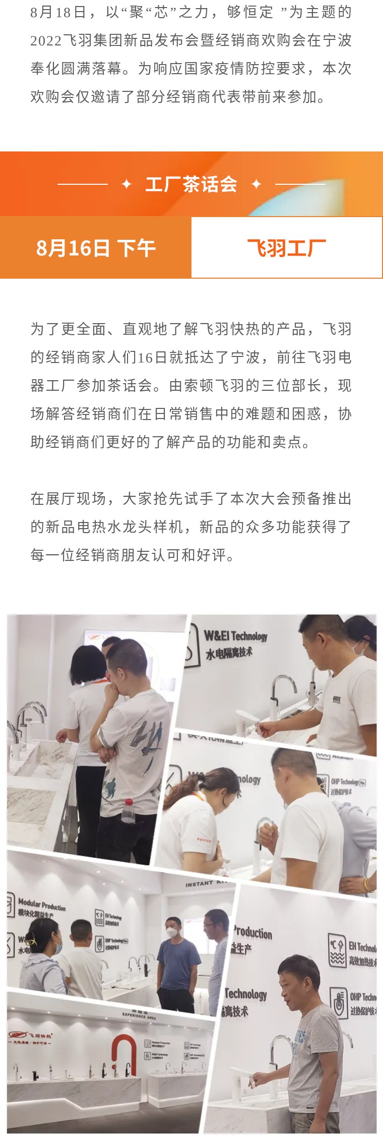 8月18日,以“聚“芯”之力,夠恒定 ”為主題的2022飛羽集團新品發布會暨經銷商歡購會在寧波奉化圓滿落幕。