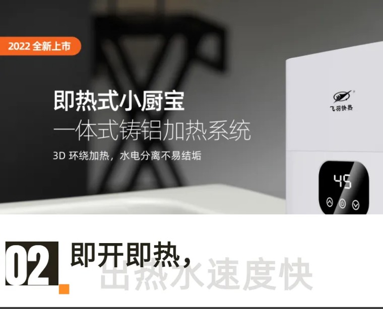 相較儲水式小廚寶“熱水不夠用、忽冷忽熱”的用水體驗,即熱式小廚寶最顯著的優點就是可以持續出熱水,熱水不光來得“快”,還能走得“穩”。
