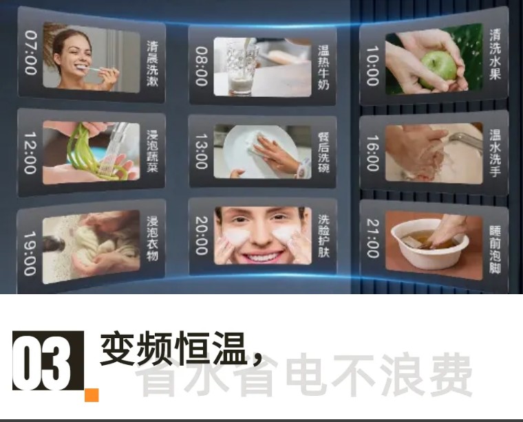無儲水箱的設計,依托大功率穩定輸出即時熱水。加熱過程一氣呵成,無需提前預熱,更無需二次加熱保溫。有效提高熱水輸出,省電節能。