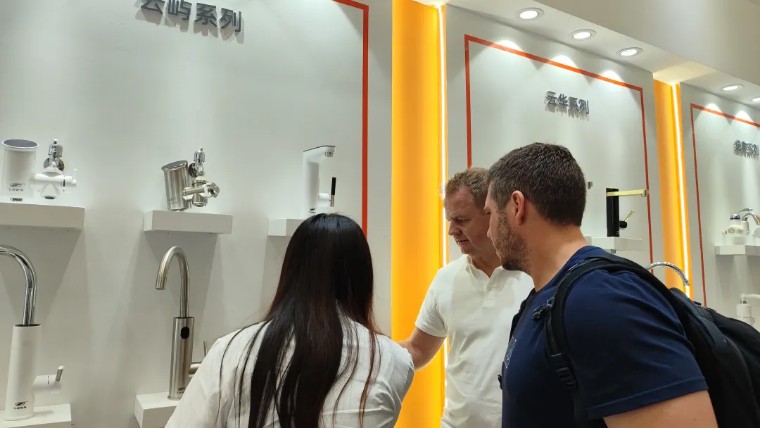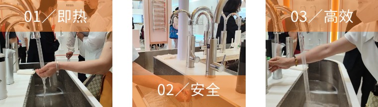 在展會現場,飛羽快熱憑借高顏值、高品質的即熱式電熱水龍頭·茉莉,和眾多外觀百變、輕奢時尚的電熱水龍頭系列的展示,收獲了現場的超高人氣。眾多參展嘉賓嘆服于飛羽快熱電熱水龍頭的快捷方便和時尚顏值,對產品表達了非凡的熱情。只要是經過飛羽展區的人,都會被這款洗漱神器吸引駐足。